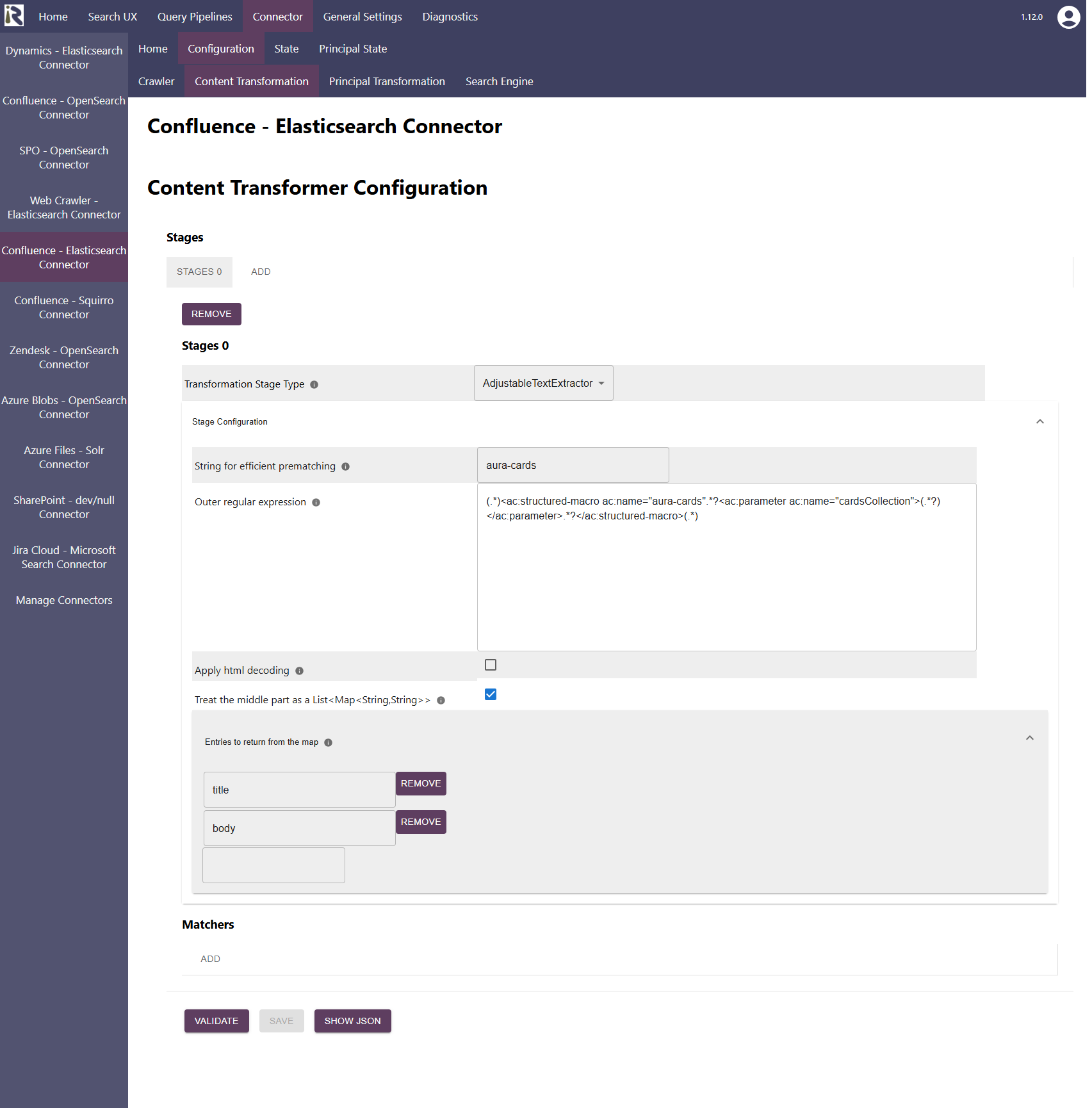 This stage always acts on the document body. If you like to transform document metadata, then please use Metadata Extractor .