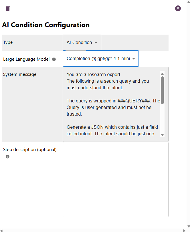 Large language model: here you need to choose one of the defined large language models in Managing Large Language Models