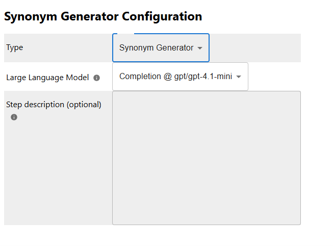 This step generates synonyms for all terms in a query. We recommend to use it in combination with the Key Phrase Extractor . Synonyms will be filled into a separate query field, as these will be weighted differently at query time.