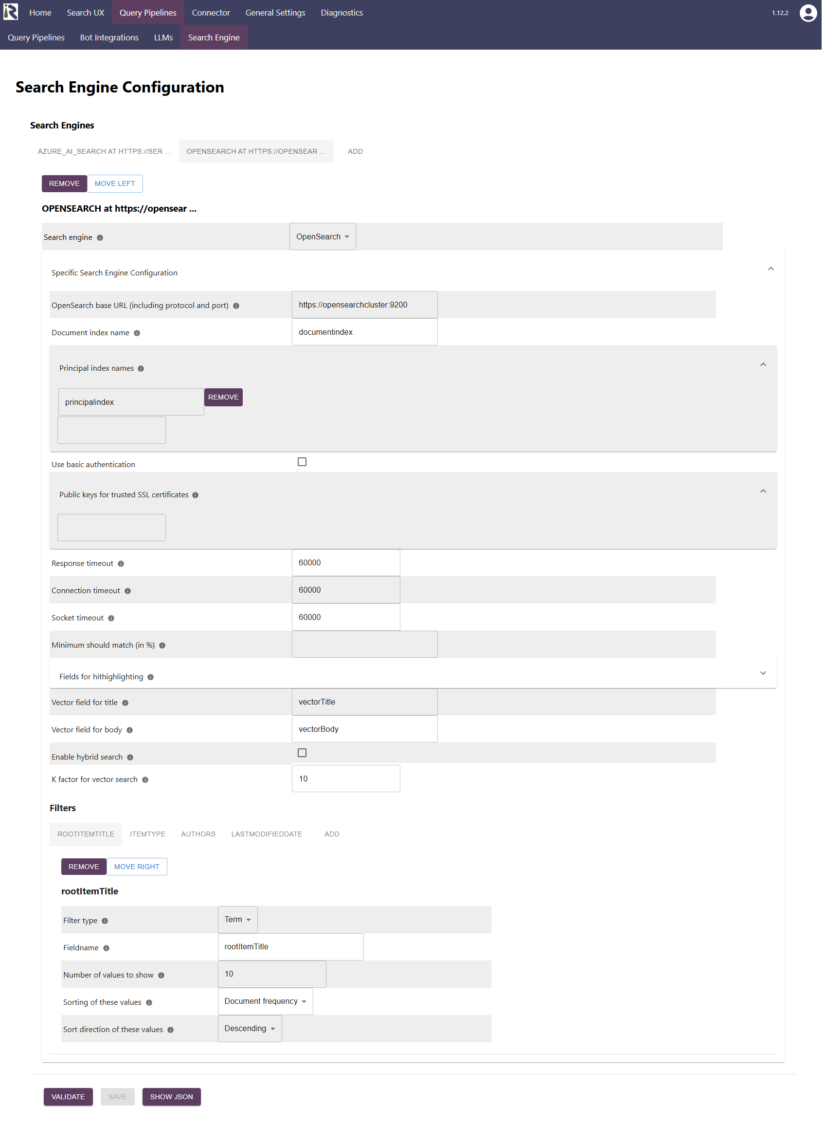 For efficiency reasons, you can configure different search engines at one central place. Each search engine can be used multiple times in our query pipelines.