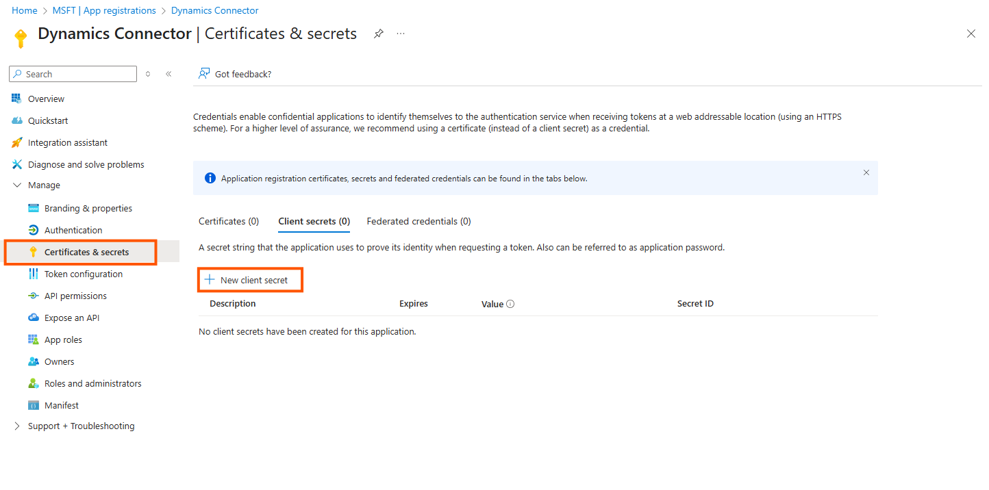 Client id: This is the client id as has been noted in the Entra Id app registration above