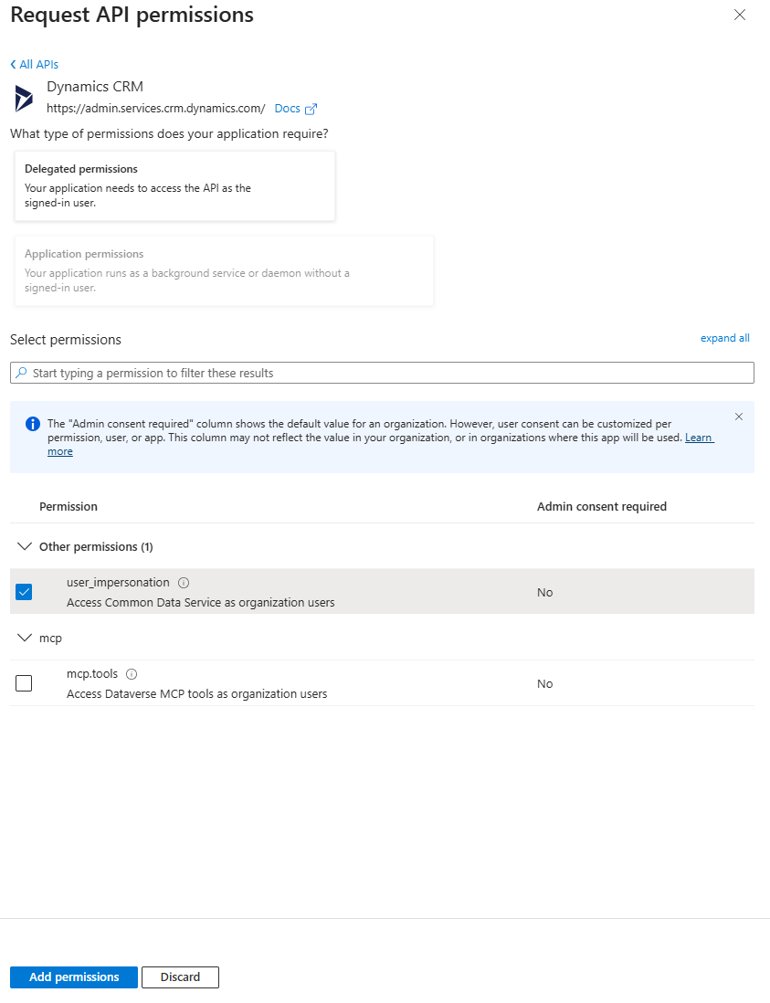 https://login.microsoftonline.com/<tenantId>>/oauth2/v2.0/authorize?client_id=<clientId>&response_type=code&redirect_uri=http%3A%2F%2Flocalhost%2Fmyapp&response_mode=query&scope=<dynamicsBaseUrl>/user_impersonation &state=40213Then you need to sign in with the crawl user. Please note that a further consent on behalf of the organization is not needed.