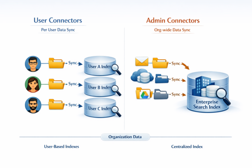 In der Enterprise Search basierte die Integration von Daten über lange Zeit hinweg überwiegend auf Admin-Konnektoren. Dabei handelt es sich um zentral betriebene Enterprise‑Search‑Konnektoren, die einen kontrollierten Zugriff auf Unternehmenssysteme ermöglichen.