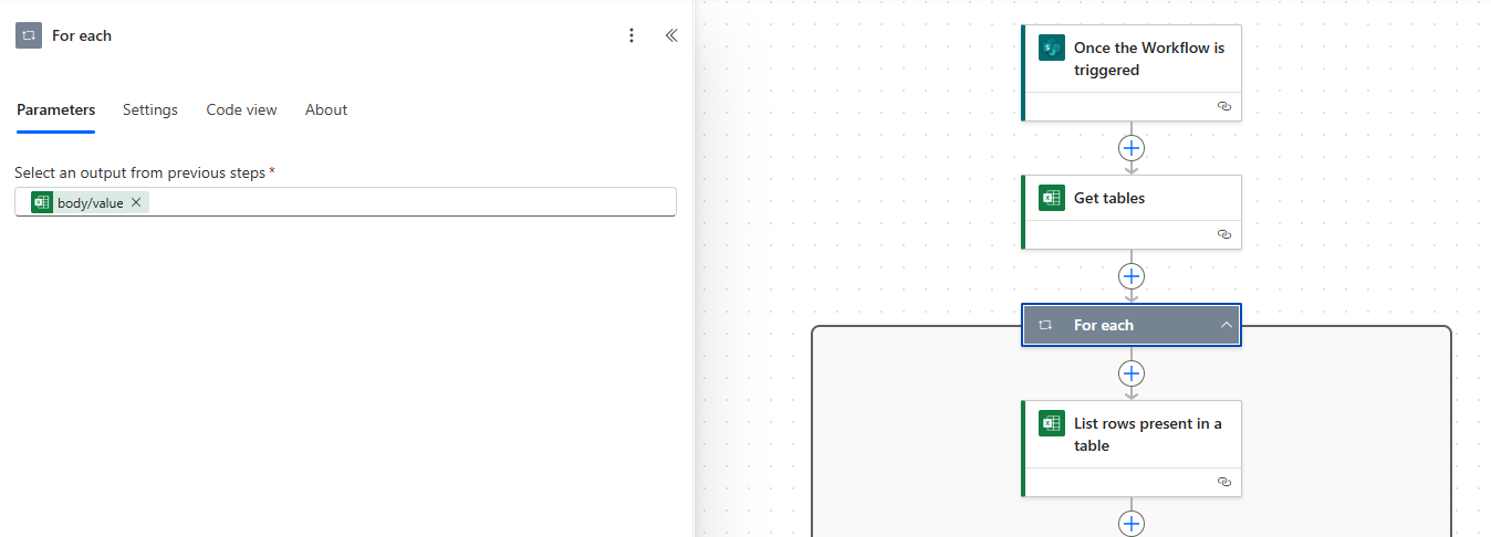 This step lists the tables in the given Excel file. A table is not raw data but must be a formatted table.