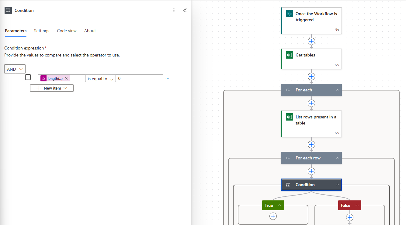 The workflow is bound to a certain document library in SharePoint Online. If it is manually triggered for an Excel file, it scans the included tables for a column called “Frage” (question). The table must furthermore contain a column “Antwort” (answer) where the answer will be written back to. Then row by row each value in question is sent to the RheinInsights Retrieval Suite for answering. The response JSON is parsed and written back to the Excel.