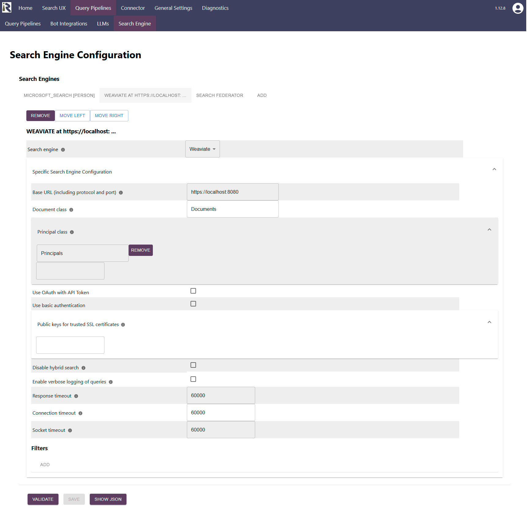 You can access this dialog via Search UX and by adding a Weaviate instance as search engine.
