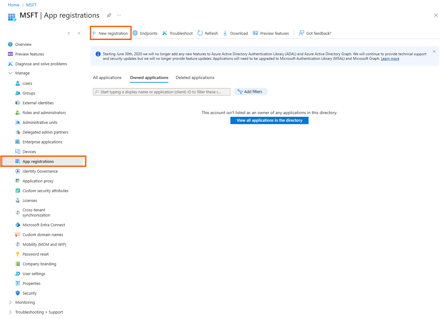 Click on Overview and make a note of the application (client) id and directory (tenant id) which will be used in the configuration below
