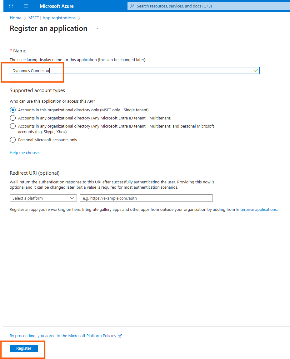 Base URL. This is the root url of your Dynamics instance. Please add it without trailing slash